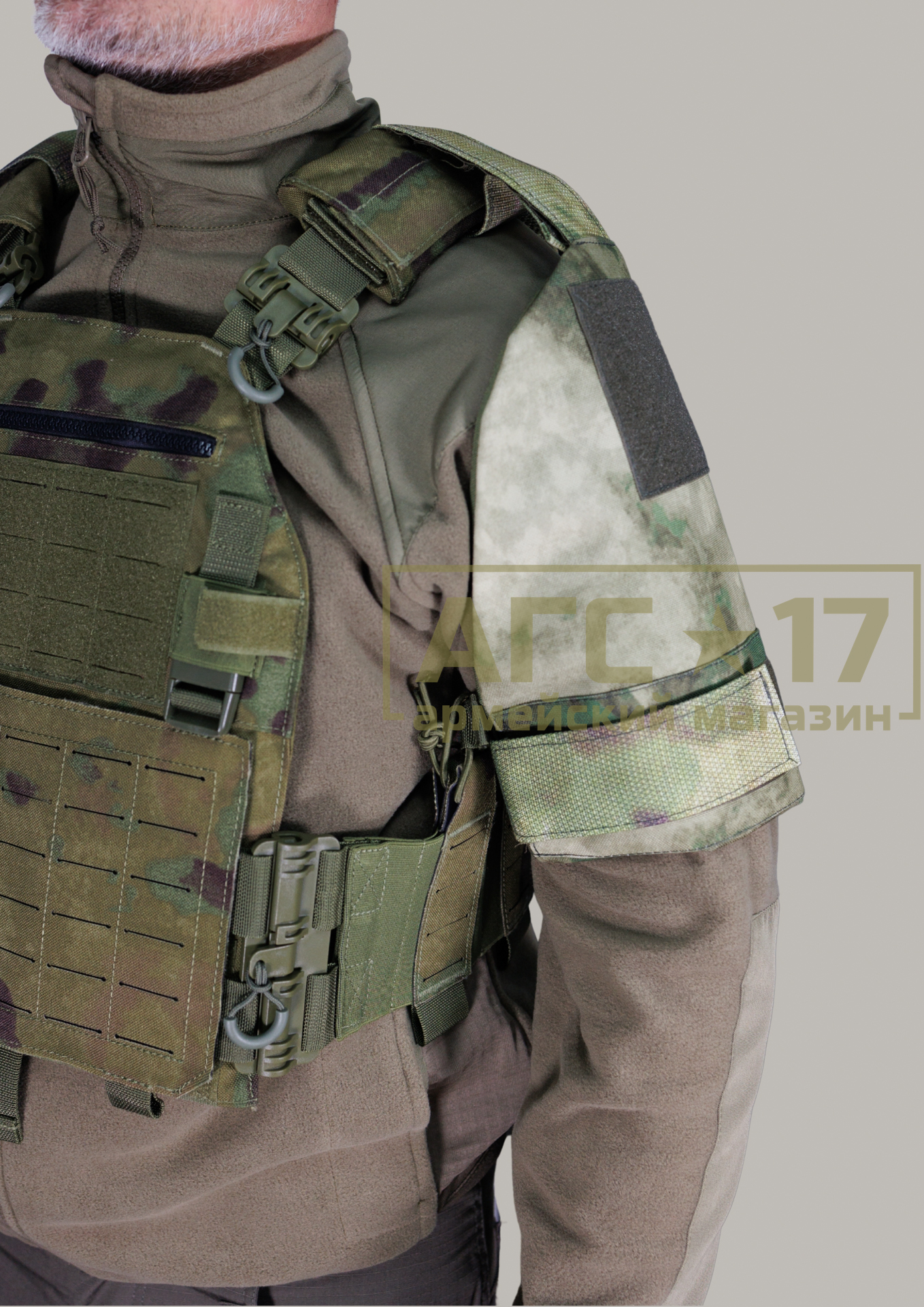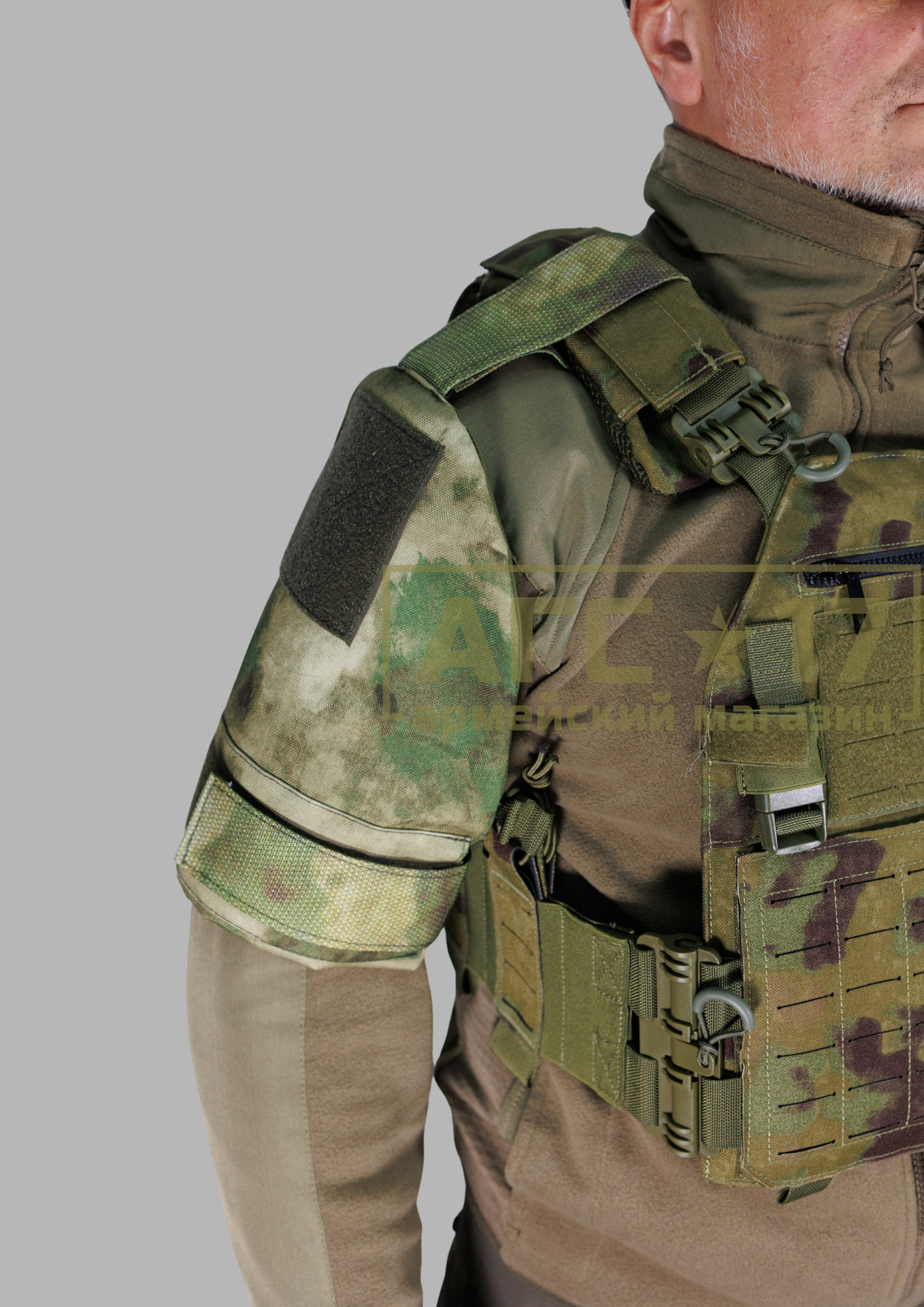 Основное преимущество заключается в универсальной системе крепления, что позволяет совместимо использовать защиту с большинством типов бронежилетов и плитоносцев. В верхней части изделия предусмотрена стропа с липучкой (velcro), которая надёжно фиксируется вокруг плечевой лямки. Такой подход обеспечивает удобство при использовании и лёгкость в эксплуатации, так как пользователю не требуется специального инструмента для установки. Также стоит отметить, что на боковой поверхности защиты расположена аналогичная стропа, обеспечивающая надёжную фиксацию изделия вокруг руки пользователя. Это позволяет избежать соскальзывания и гарантирует, что защита будет оставаться на своём месте даже в самых динамичных условиях. Защита оборудована баллистическим пакетом Бр1 СВМПЭ, что дополнительно обеспечивает защиту пользователя от возможных угроз. Этот компонент разрабатывался с учётом современных технологий и особенностей боевых действий, что делает его незаменимым для специалистов в области безопасности и армии.