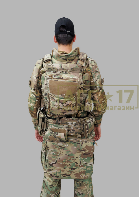 Также стоит упомянуть о возможности установки сменной передней панели “MOLLE”, что открывает широкие возможности для модульного использования. Это позволяет бойцам настраивать свой комплект под конкретные задачи и оперативные нужды. Примечательным является уровень противоосколочной защиты, который достигается благодаря высокой площади покрытия и отсутствию баллистических швов между боковыми и лицевыми пакетом. Это значительно повышает вероятность предотвращения пробития снарядами, что особенно важно в контексте современных боевых действий.