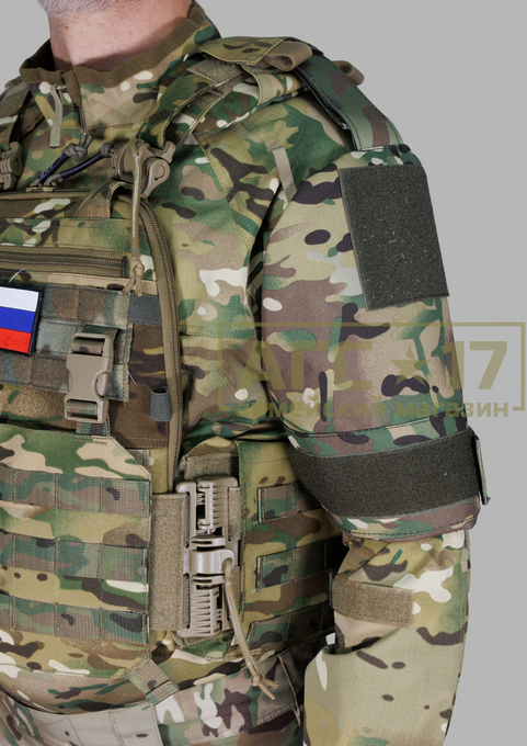 Основное преимущество заключается в универсальной системе крепления, что позволяет совместимо использовать защиту с большинством типов бронежилетов и плитоносцев. В верхней части изделия предусмотрена стропа с липучкой (velcro), которая надёжно фиксируется вокруг плечевой лямки. Такой подход обеспечивает удобство при использовании и лёгкость в эксплуатации, так как пользователю не требуется специального инструмента для установки. Также стоит отметить, что на боковой поверхности защиты расположена аналогичная стропа, обеспечивающая надёжную фиксацию изделия вокруг руки пользователя. Это позволяет избежать соскальзывания и гарантирует, что защита будет оставаться на своём месте даже в самых динамичных условиях. Защита оборудована баллистическим пакетом Бр1 СВМПЭ, что дополнительно обеспечивает защиту пользователя от возможных угроз. Этот компонент разрабатывался с учётом современных технологий и особенностей боевых действий, что делает его незаменимым для специалистов в области безопасности и армии.