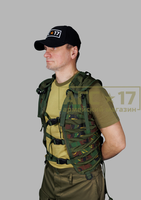 Разгрузка "Голландия" DpM- Тактический разгрузочный жилет из прочного нейлона. Конструкция на основе дышащей сетки обеспечивает комфорт и совместимость с рюкзаком. Полностью модульная платформа с системой крепления MOLLE.